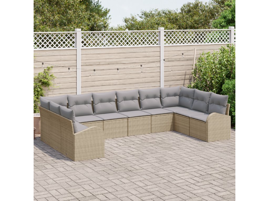 Set pohovek s polštářem 10 pcs Béžová a Světle šedá polyratan