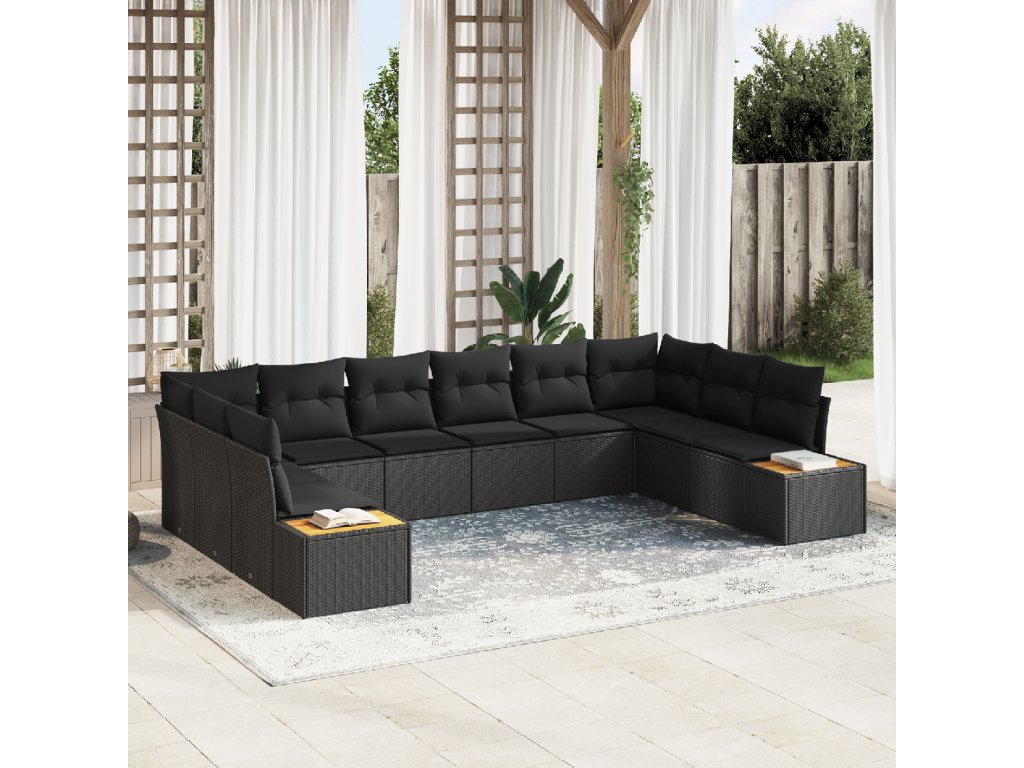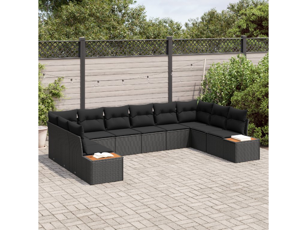 Sada zahradních pohovek s polštářem 10 pcs Černá polyratan