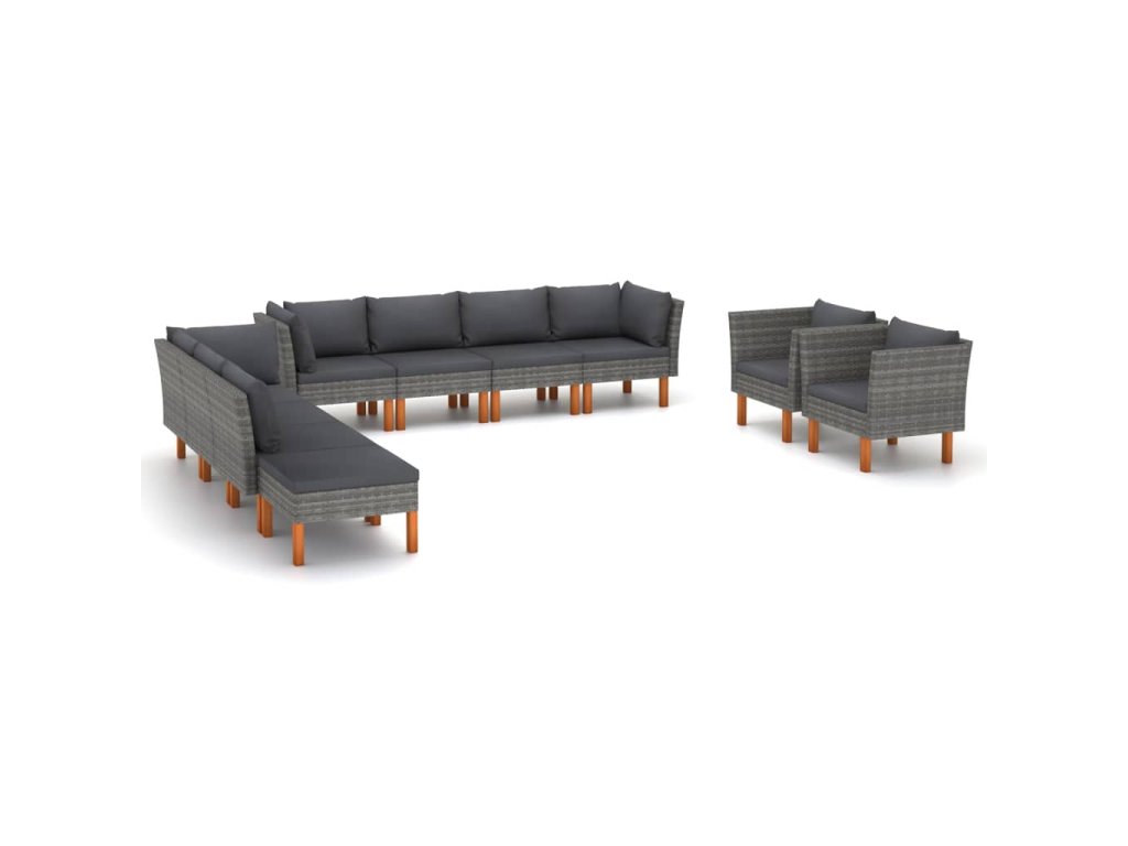 10dílná zahradní sedací souprava polyratan a eukalyptus šedá