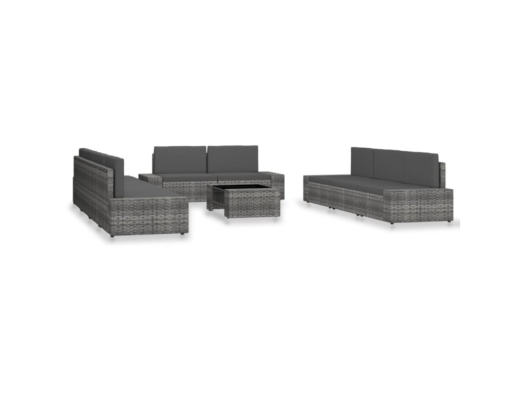 Posezení z klimaticky odolného PE ratanu se snadno čistí, je odolné a vhodné pro každodenní použití. Pohovka má robustní práškově lakovaný ocelový rám, který má velmi dlouhou životnost. Vyjímatelné podušky na sedáky a opěradla jsou silně polstrované pro optimální pohodlí při sezení. Konferenční stolek s minimalistickým designem je ideální pro odkládání vašich knih, časopisů, čaje a čehokoliv, co potřebujete pro uklidňující chvíle relaxace. Sedací souprava také zaujme svým modulárním designem, který umožňuje všechny části soupravy uspořádat a přizpůsobit podle potřeby.