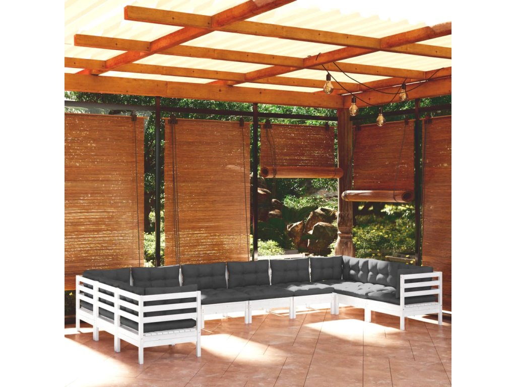 10dílná zahradní sedací souprava s poduškami bílá borovice
