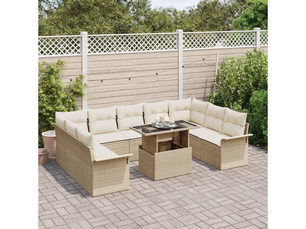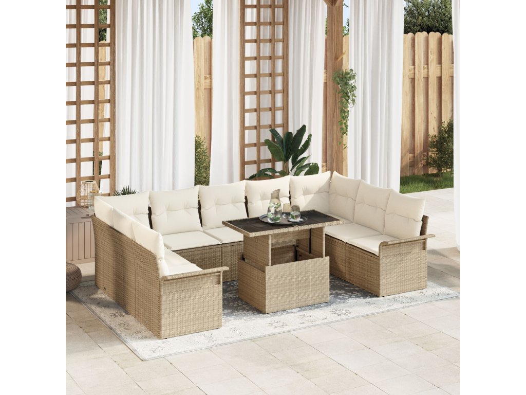 Sada zahradních pohovek s polštářem 10 pcs Béžová Poly ratan