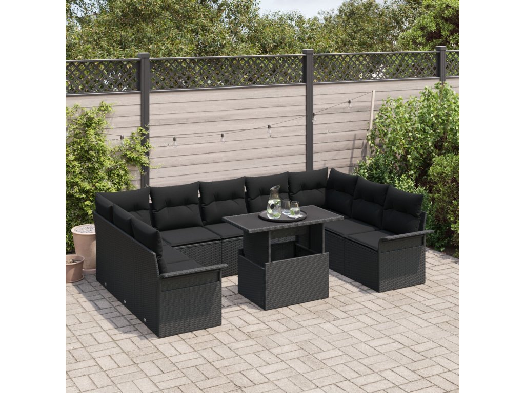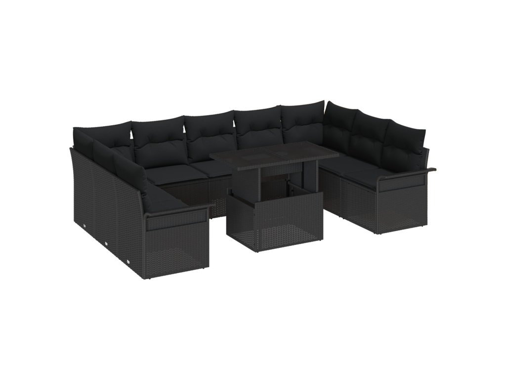 Sada zahradních pohovek s polštářem 10 pcs Černá Poly ratan