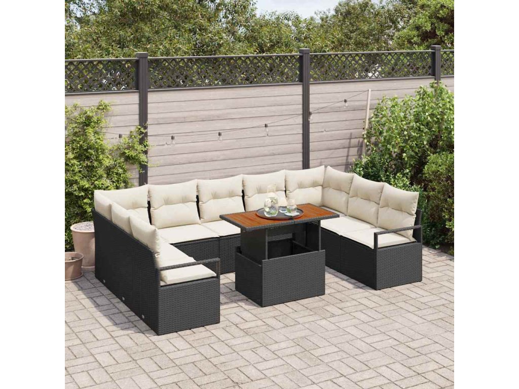 Sada zahradních pohovek s úložištěm 10 pcs Černá Poly ratan