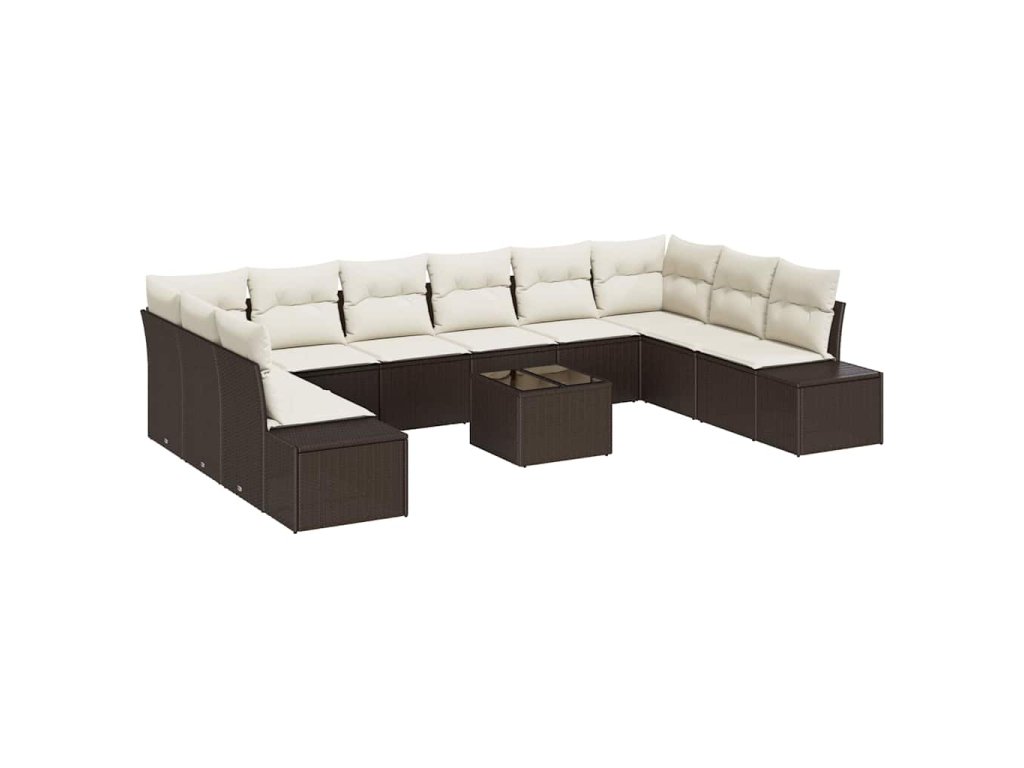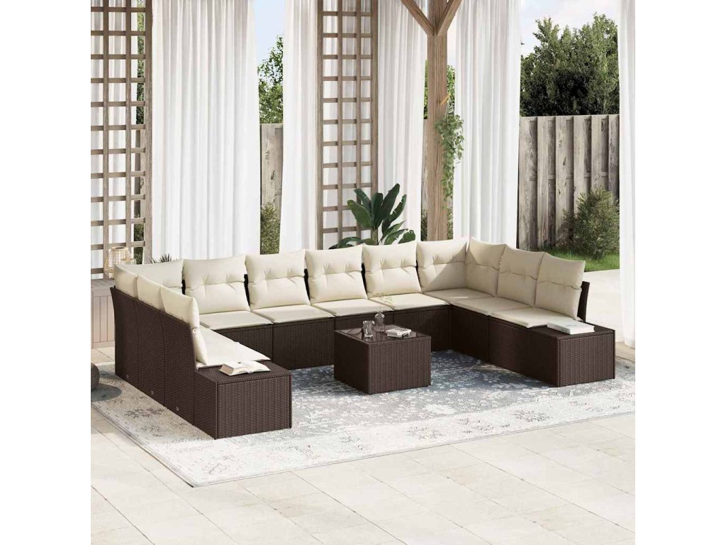 Sada zahradních pohovek 11 pcs Hnědá a krémová Poly Ratan