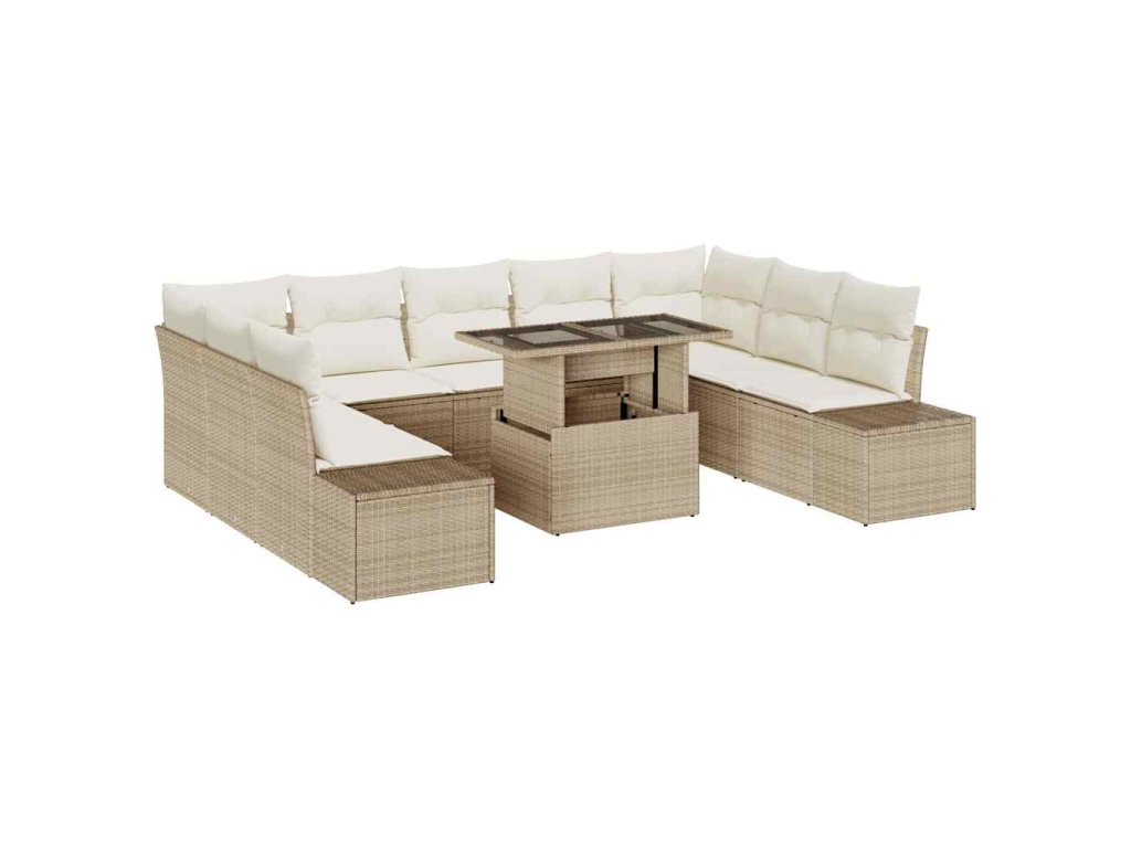 Sada zahradních pohovek s úložištěm 10 pcs Béžová Poly ratan