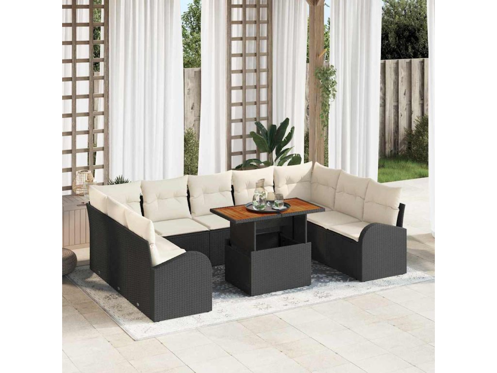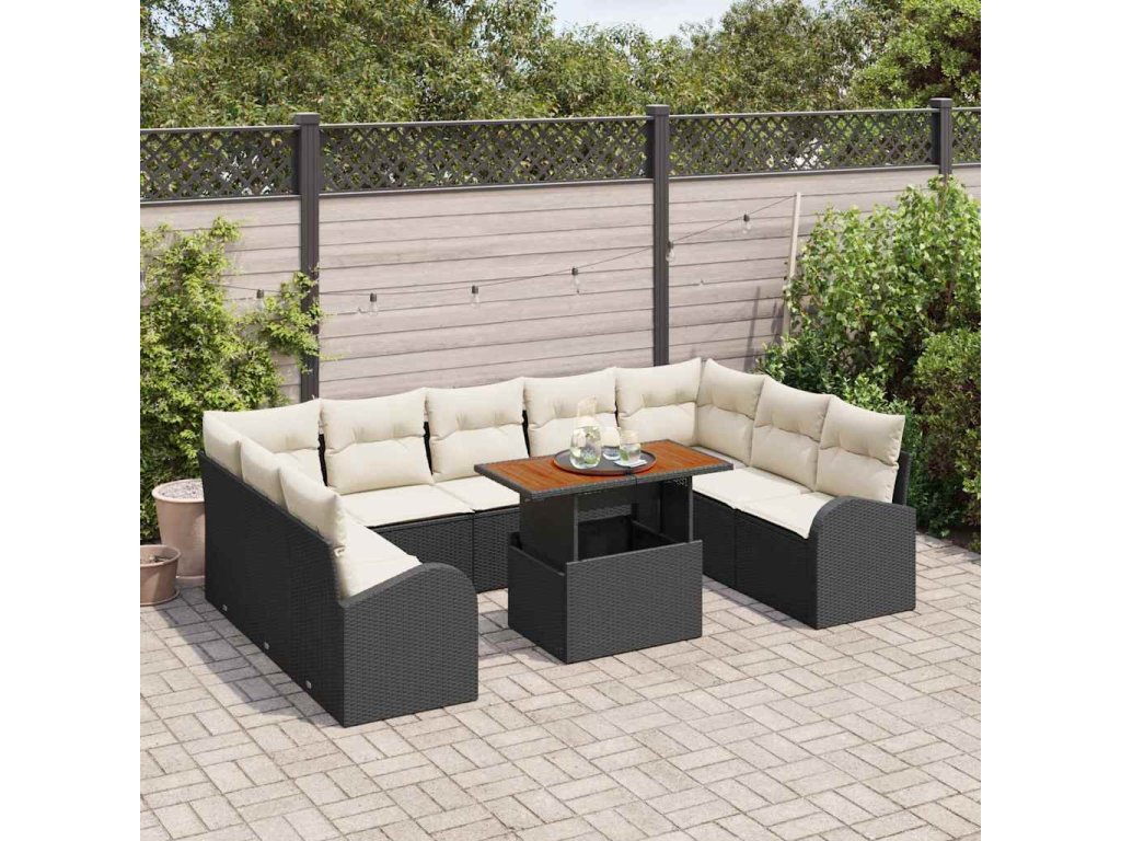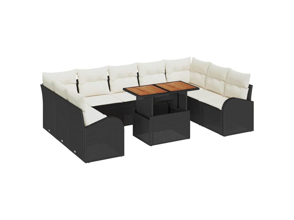 Sada zahradních pohovek s úložištěm 10 pcs Černá Poly ratan