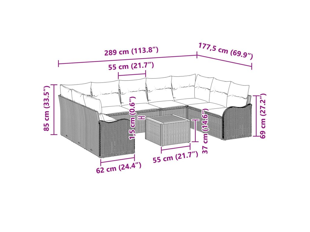 Sada zahradních pohovek 10 pcs Černá Poly ratan