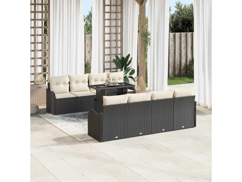 Sada zahradních pohovek s polštářem 9 pcs Černá Poly ratan
