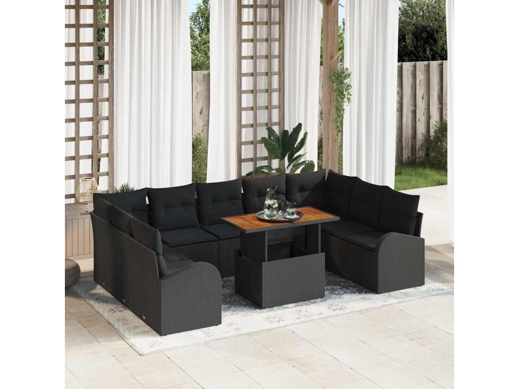 Sada zahradních pohovek s úložištěm 10 pcs Černá Poly ratan