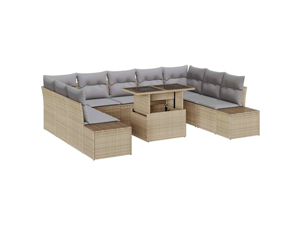 Sada zahradních pohovek s úložištěm 10 pcs Béžová Poly ratan