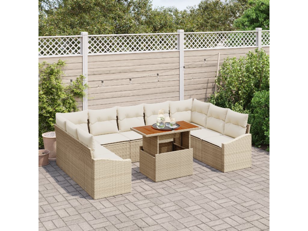 Zahradní jídelní souprava s polštářem 10 pcs Béžová a krémová