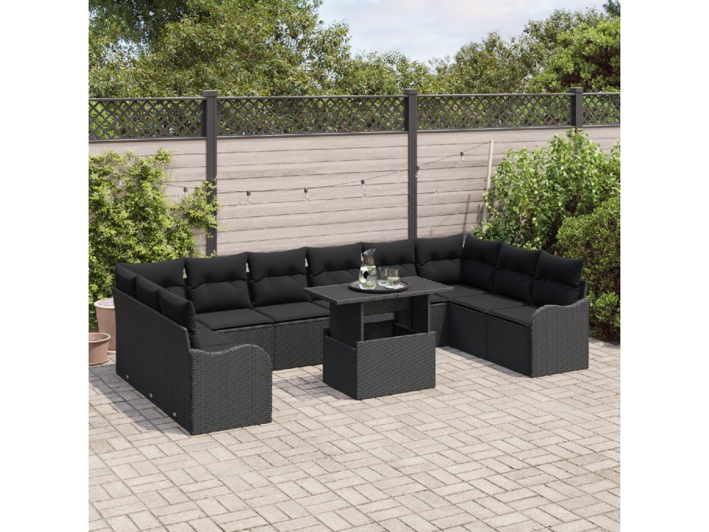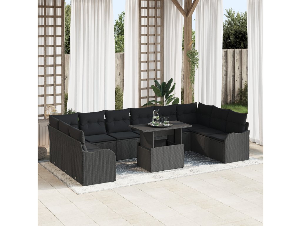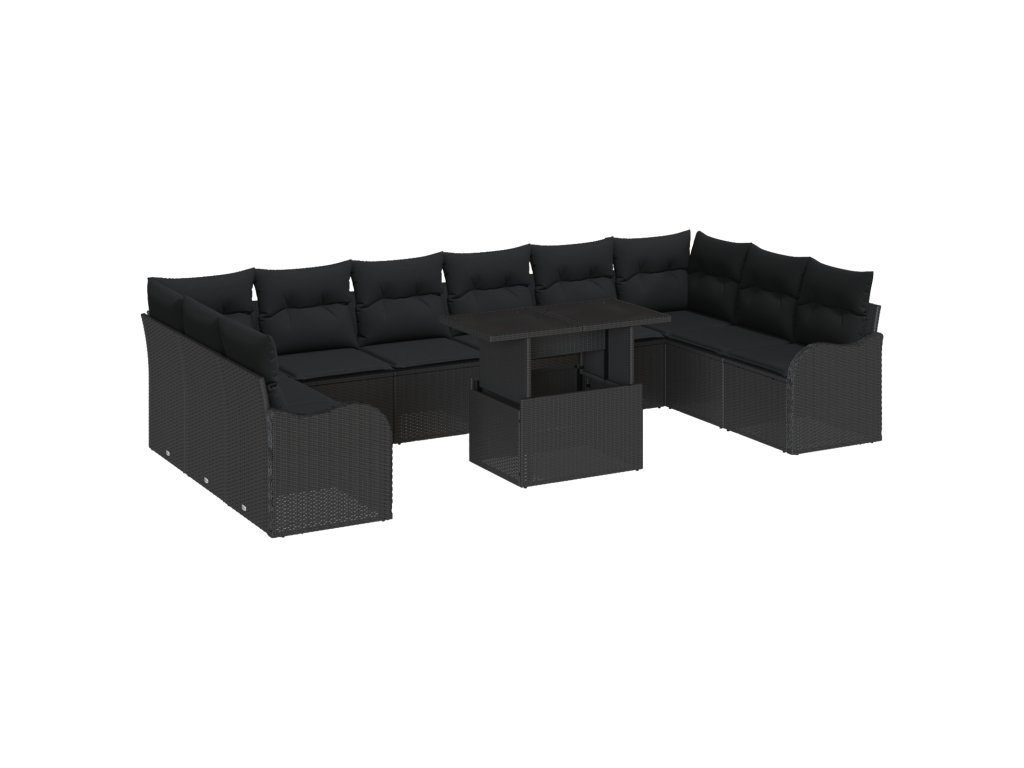 Sada zahradních pohovek s polštářem 11 pcs Černá Poly ratan