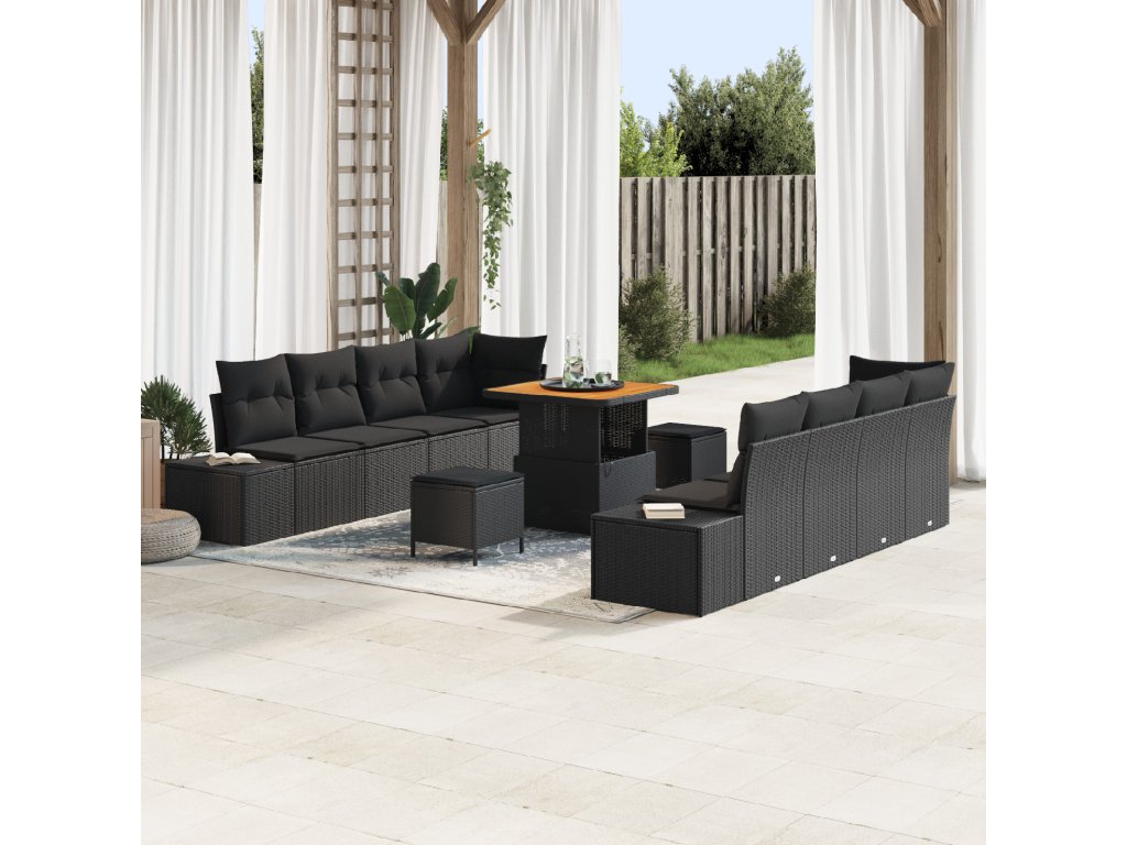 Sada zahradních pohovek s polštářem s úložištěm 11 pcs Černá