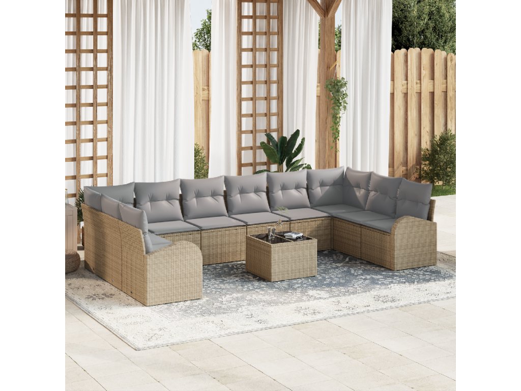 Sada zahradních pohovek s polštářem 11 pcs Béžová a Světle šedá