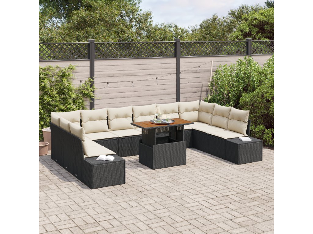 Sada zahradních pohovek s polštářem 11 pcs Černá a krémová