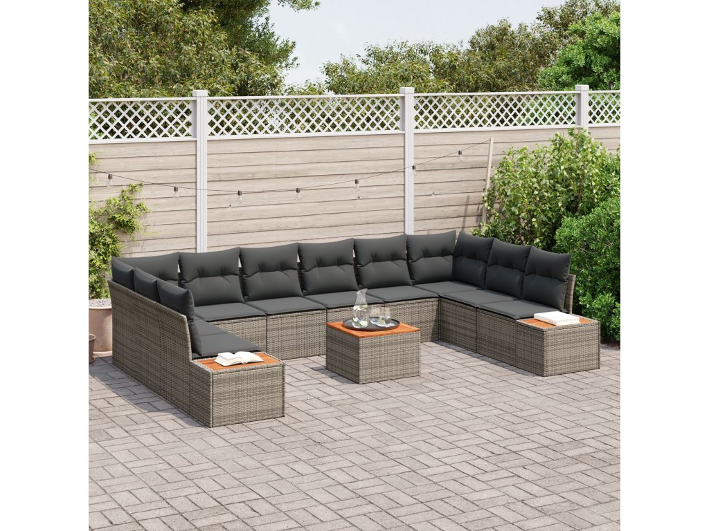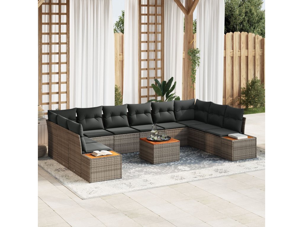 Sada zahradních pohovek s polštářem 11 pcs Šedá Poly ratan