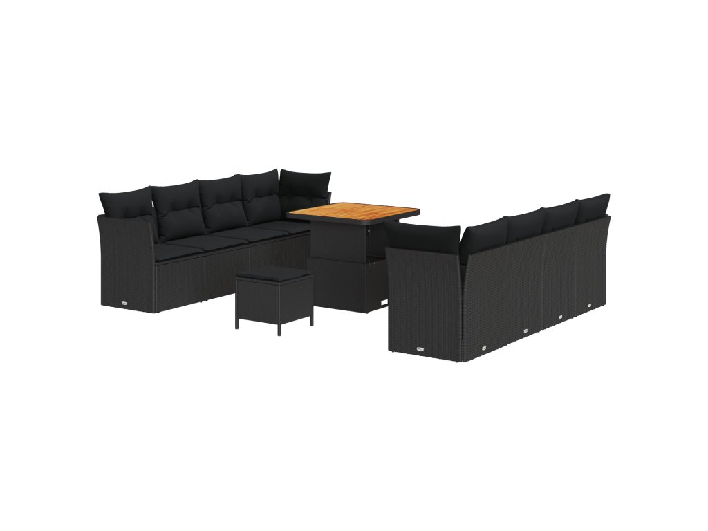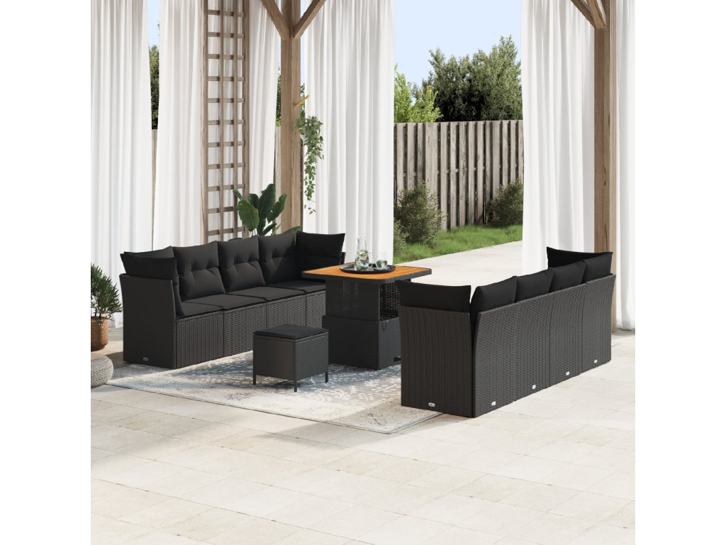Sada zahradních pohovek s polštářem 11 pcs Černá polyratan