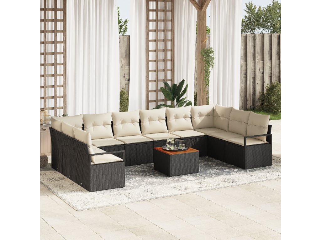 Sada zahradních pohovek s polštářem 11 pcs Černá Poly ratan