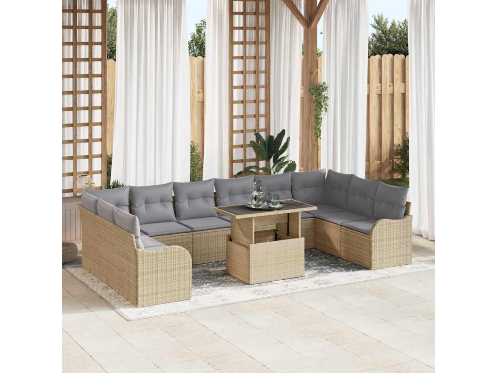 Sada zahradních pohovek s polštářem 11 pcs Béžová Poly Ratan