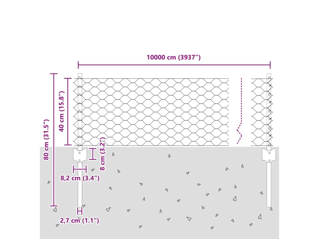 - Celkové rozměry: 10000 x 2,7 x 40 cm (D x Š x V)
