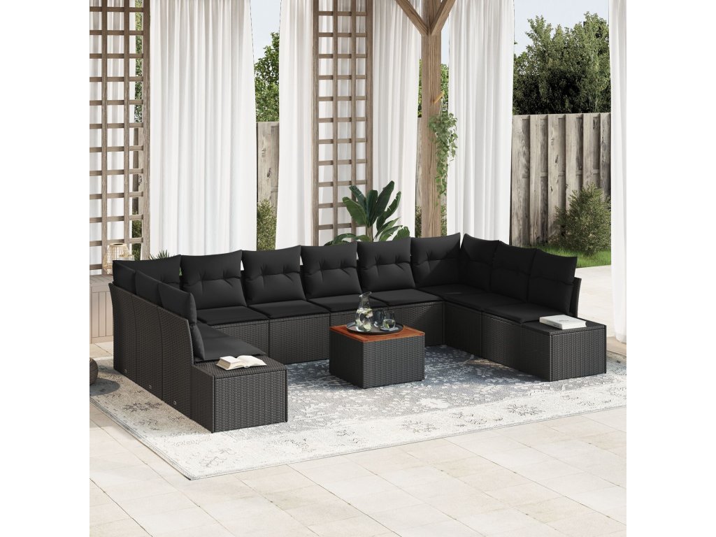 Sada zahradních pohovek s polštářem 11 pcs Černá Poly ratan