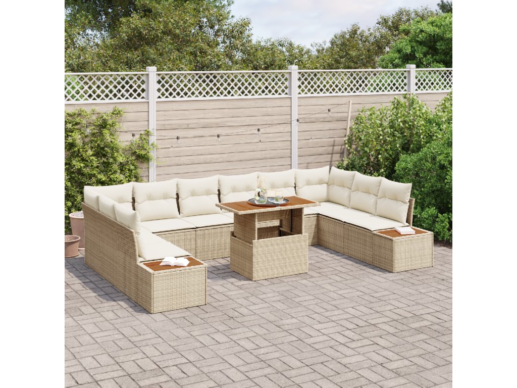 Zahradní jídelní souprava s polštářem 11 pcs Béžová a krémová