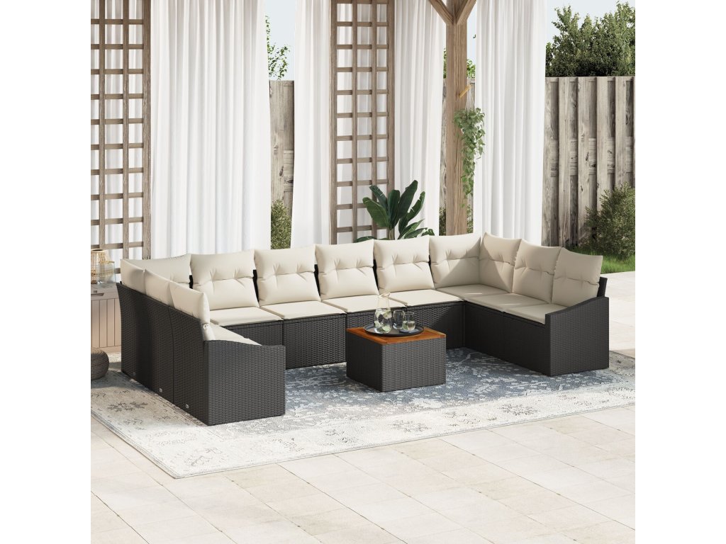 Sada zahradních pohovek s polštářem 11 pcs Černá Poly ratan