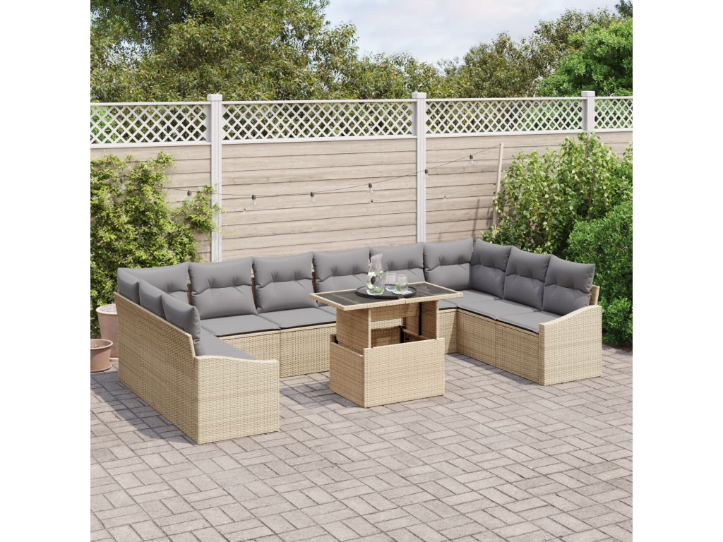 Set pohovek s polštářem 11 pcs Béžová a Světle šedá polyratan