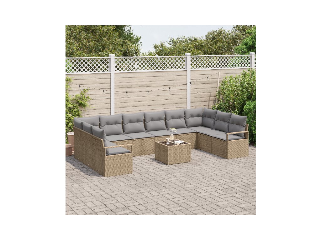 Set pohovek s polštářem 11 pcs Béžová a Světle šedá polyratan
