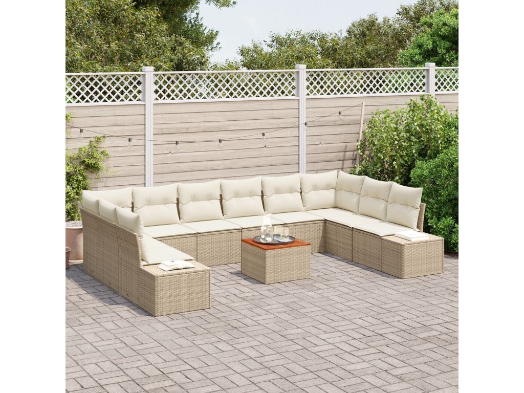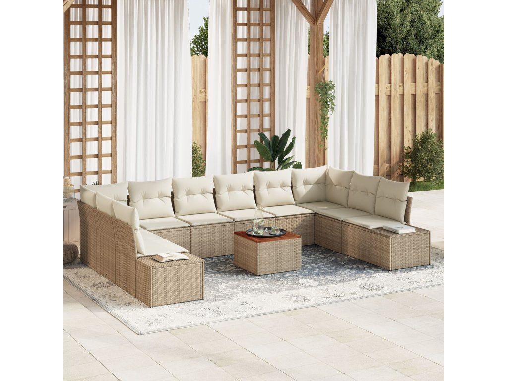 Sada zahradních pohovek s polštářem 11 pcs Béžová Poly ratan