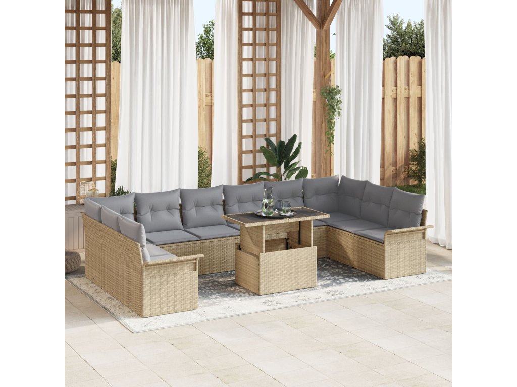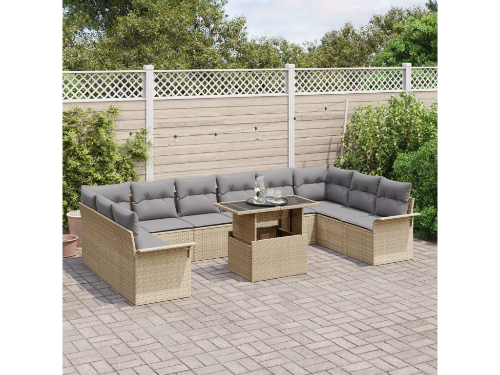 Sada zahradních pohovek s polštářem 11 pcs Béžová Poly ratan