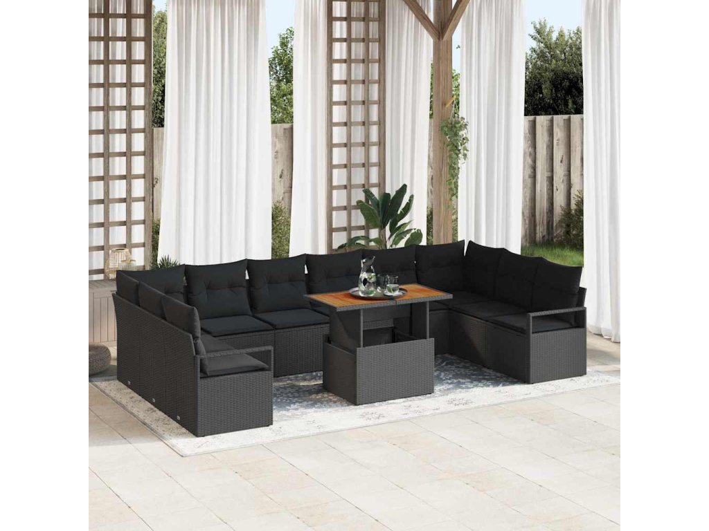 Sada zahradních pohovek s úložištěm 11 pcs Černá Poly ratan