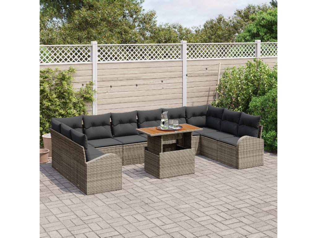 Sada zahradních pohovek s polštářem 11 pcs Šedá