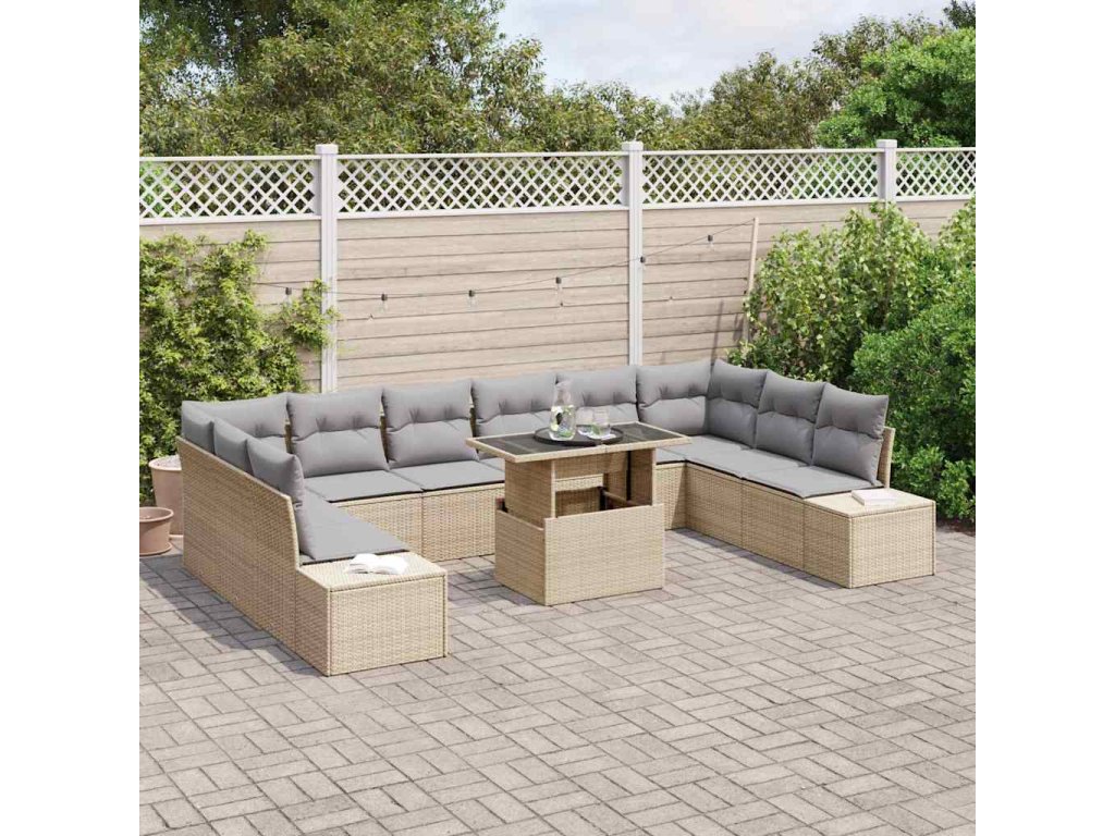 Sada zahradních pohovek s úložištěm 11 pcs Béžová Poly ratan