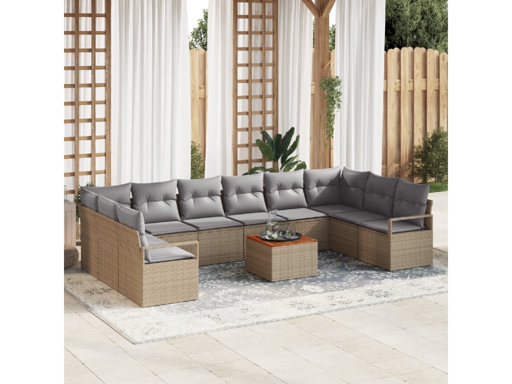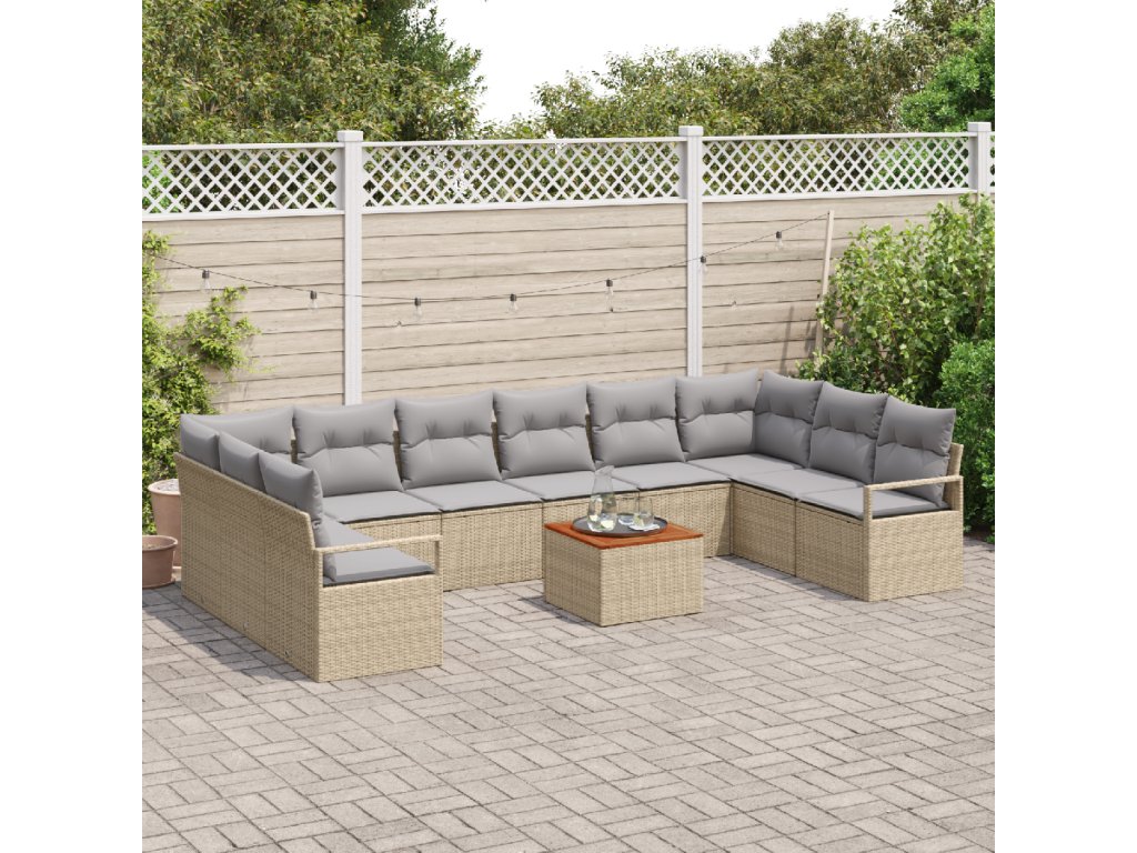 Sada zahradních pohovek s polštářem 11 pcs Béžová Poly ratan