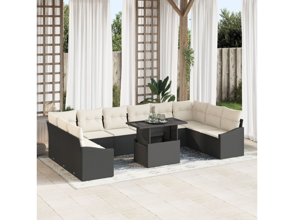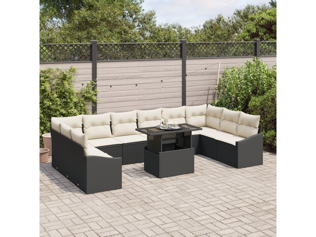 Set pohovek s polštářem 11 pcs Černá a krémová polyratan