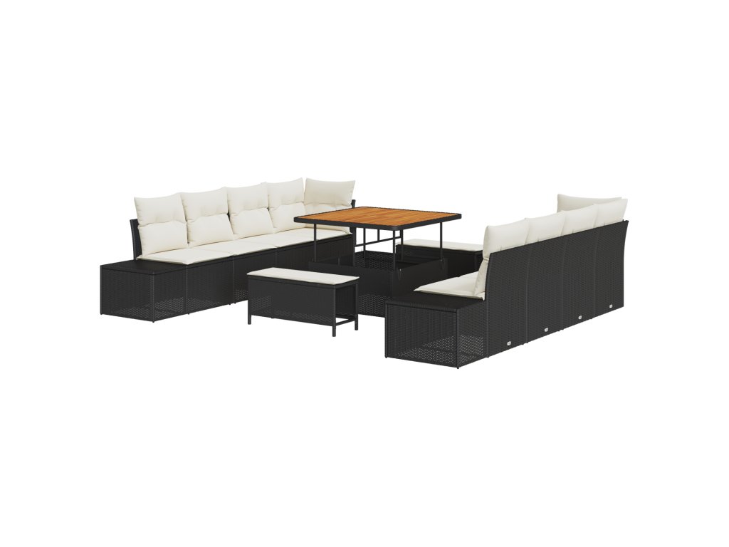 Sada zahradních pohovek s polštářem 11 pcs Černá a krémová