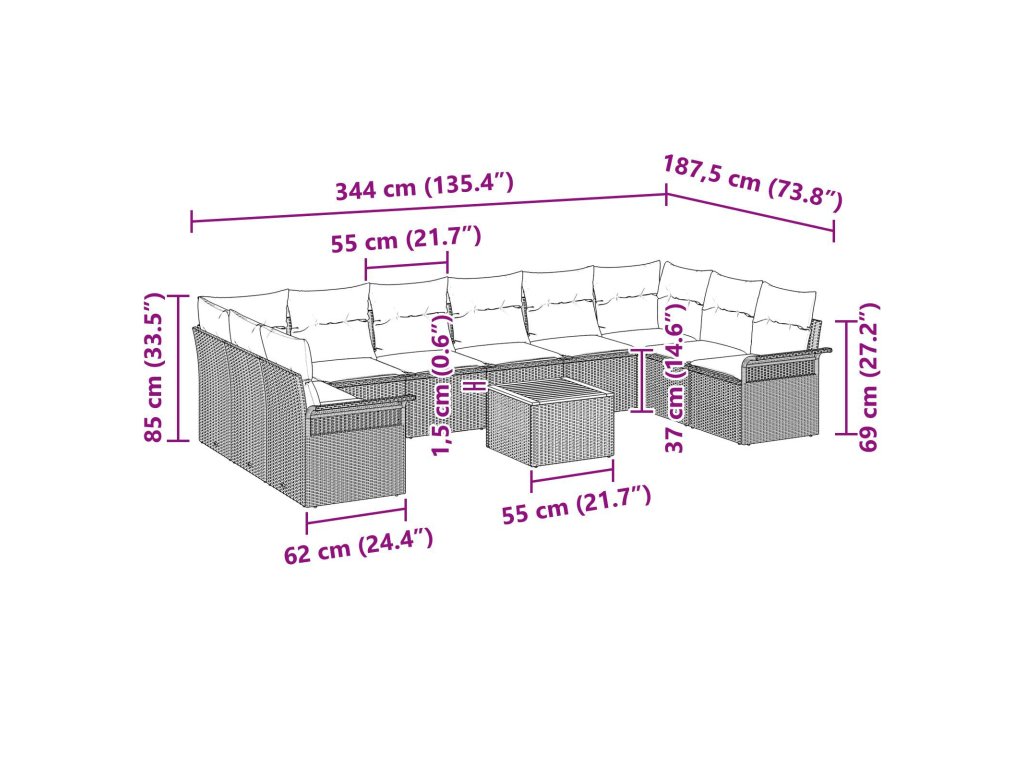 Sada zahradních pohovek 11 pcs Šedá Poly ratan