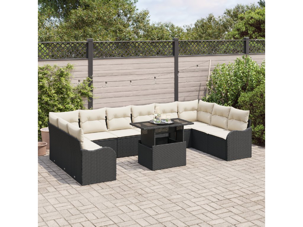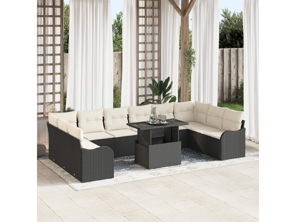 Sada zahradních pohovek s polštářem 11 pcs Černá Poly ratan