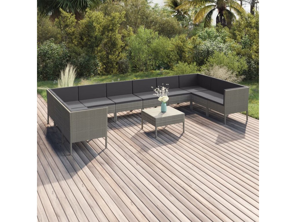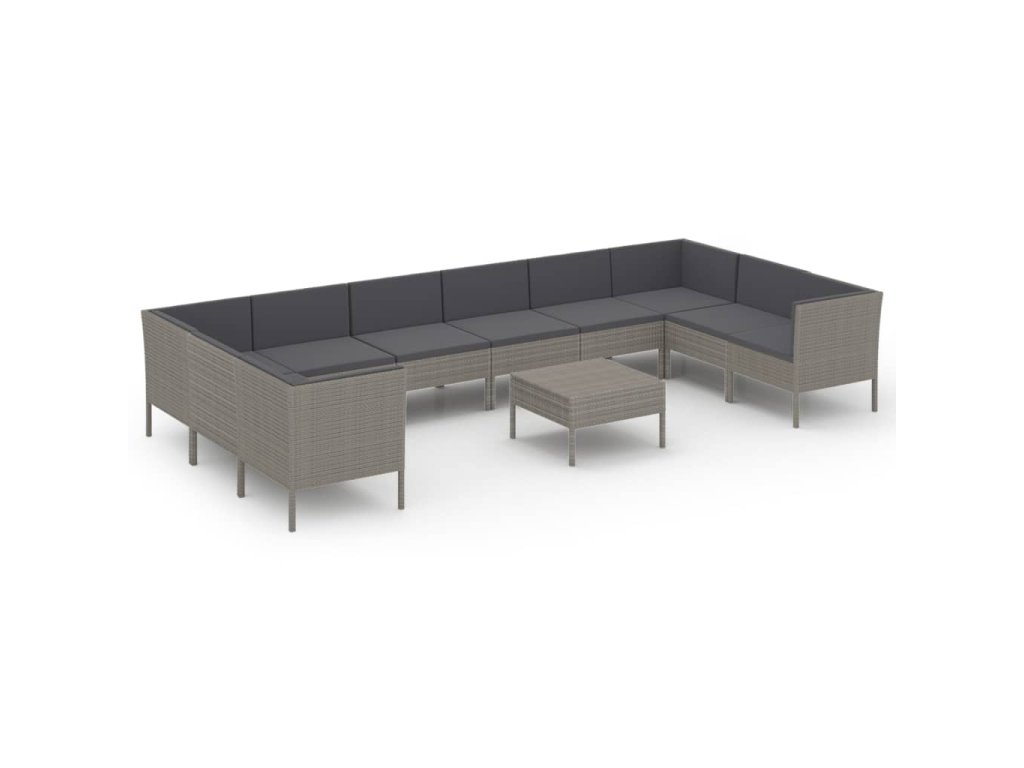 11dílná zahradní sedací souprava s poduškami polyratan šedá