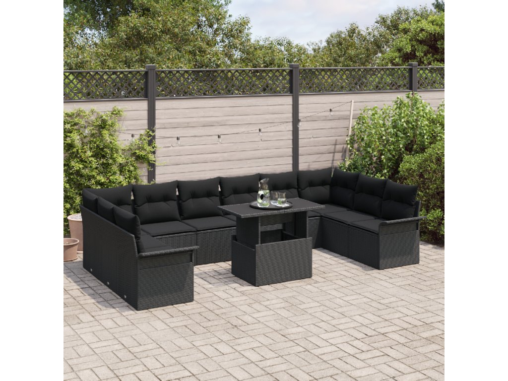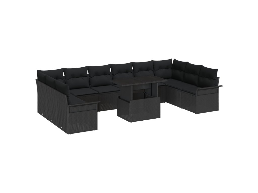 Sada zahradních pohovek s polštářem 11 pcs Černá Poly ratan