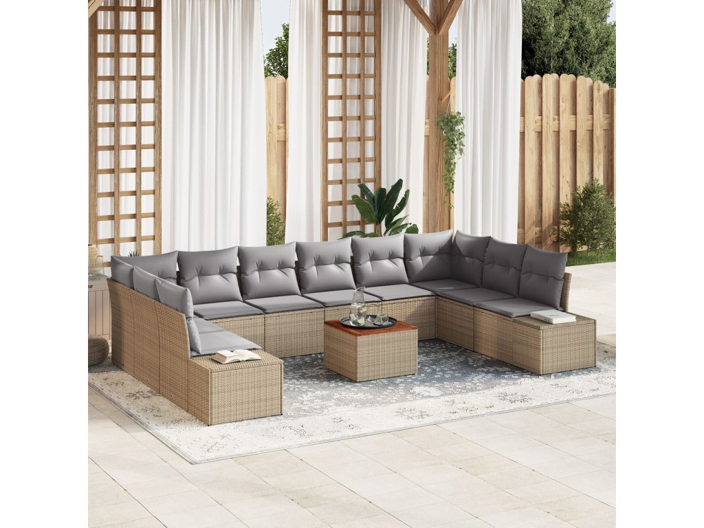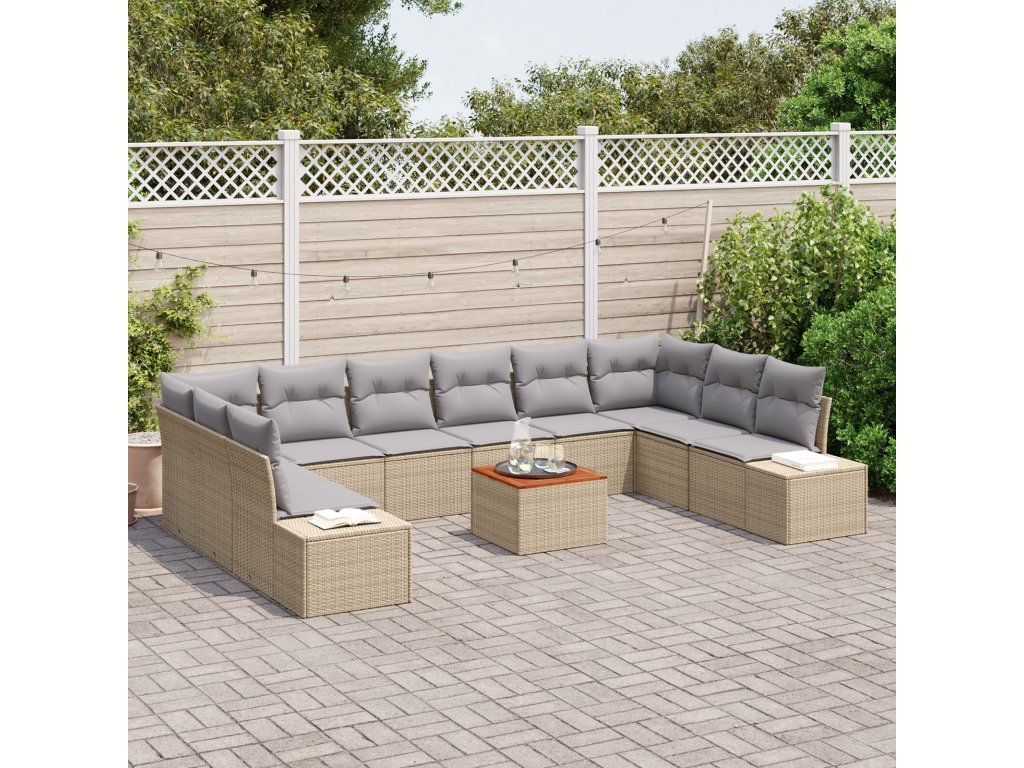 Sada zahradních pohovek s polštářem 11 pcs Béžová Poly ratan