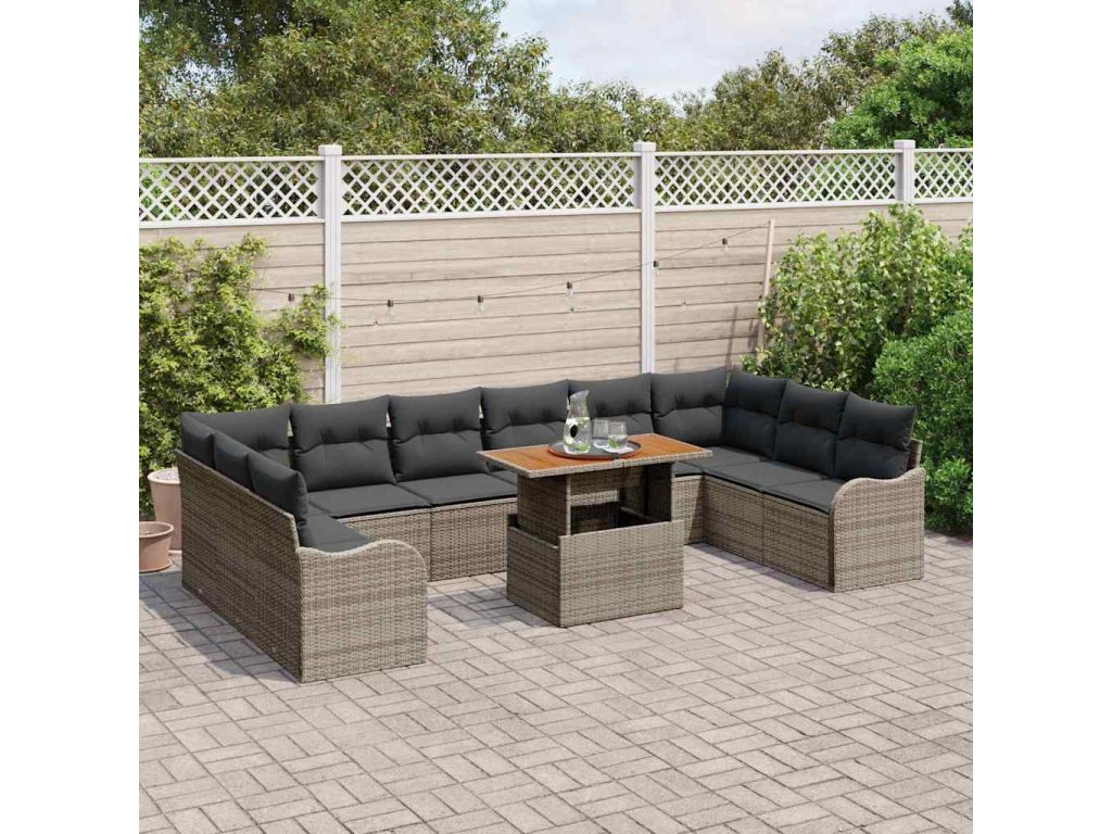 Sada zahradních pohovek s úložištěm 11 pcs Šedá Poly ratan
