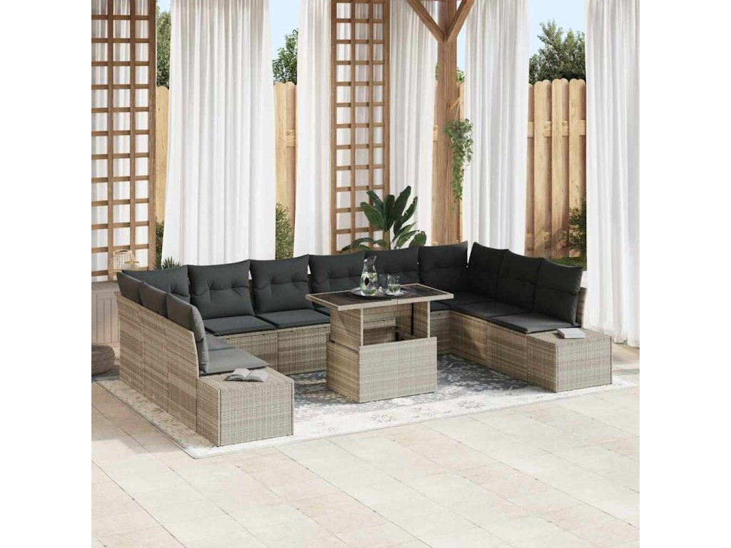 Sada zahradních pohovek 11 pcs Světle šedá Poly ratan