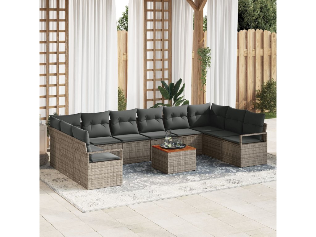 Sada zahradních pohovek s polštářem 11 pcs Šedá Poly ratan
