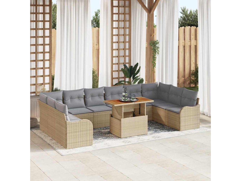 Sada zahradních pohovek s úložištěm 11 pcs Béžová Poly ratan