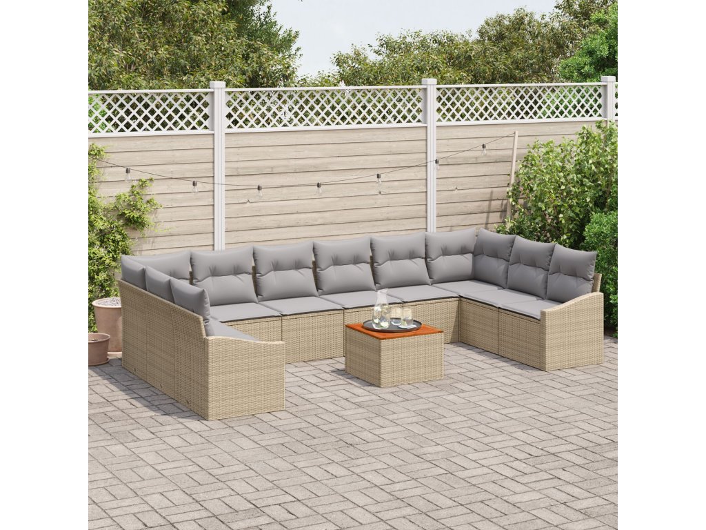Sada zahradních pohovek s polštářem 11 pcs Béžová Poly ratan