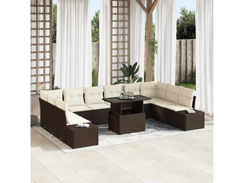 Sada zahradních pohovek s úložištěm 11 pcs Hnědá Poly ratan