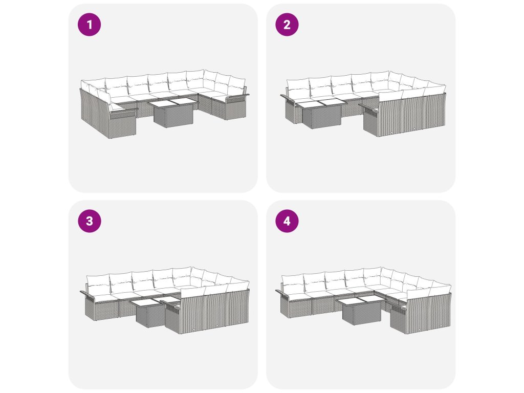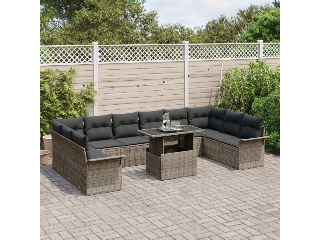 Sada zahradních pohovek s polštářem 11 pcs Šedá Poly ratan